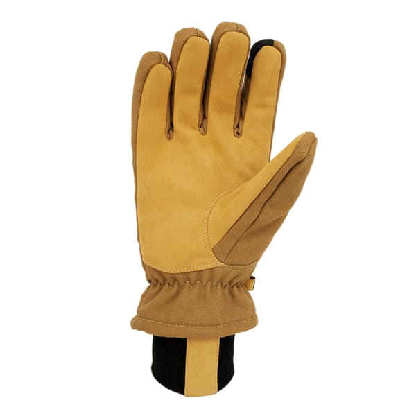 Rippstrickbündchen · Carhartt-Etikett auf der Vorderseite · Gewebt · Strapazierfähiger Baumwoll-Canvas mit Handfläche, Finger und Daumen aus Kunstleder · Ultraweiche Isolierung · Poly-Wattierung